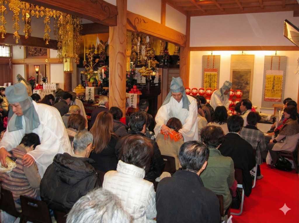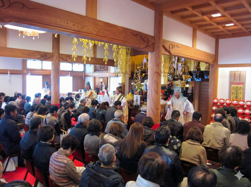大祭・大祈祷は毎年1月の第4日曜日とその前日の土曜日に行われます。本堂では修法師による加持祈祷が行われ、皆様の無病息災などをお祈り致します。